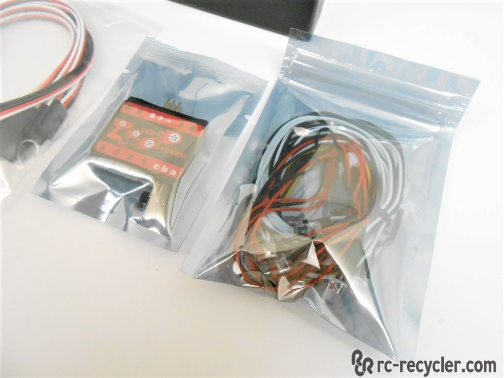 This is a 12 light LED advanced multi-function controller kit for 1/10 scale vehicles. This has JST inputs for the ESC to allow functionality from the throttle/steering channel. This has 4 white (5mm), 2 white (3mm), 2 red (5mm), and four orange (3mm). The yellow turn signals flash when steering, 2 for the left front/rear and 2 for the right front/rear. The red tail lights brighten when applying the reverse. Includes extended JST wires, main controller and accessories for installation.