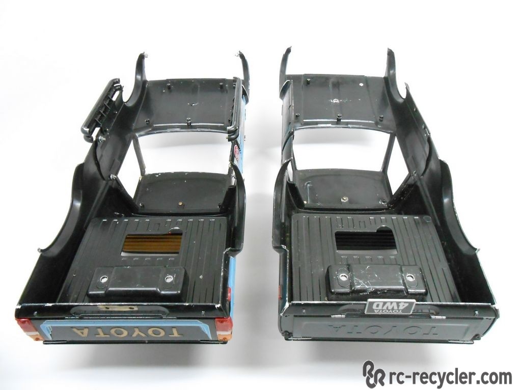 This is a pair of painted Tamiya Bruiser 1/10 scale truck bodies featuring Front / Rear two piece body. Rear beds are one piece mold with sleeper cab. These are a thick ABS plastic body that is repairable and refinish-able. Includes one interior and one front grill. Everything pictured.