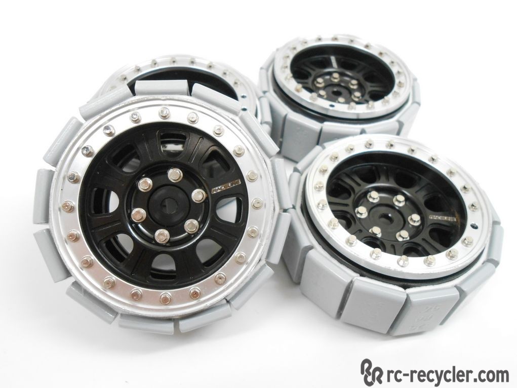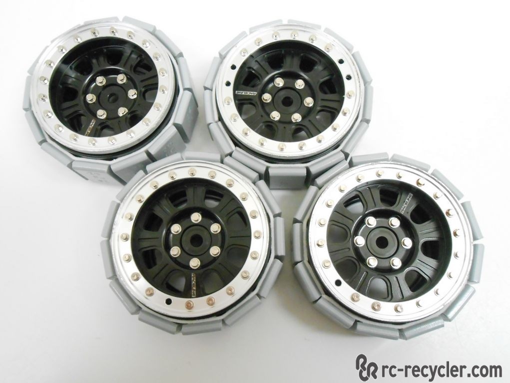 These are in very good condition with light wear from use. These are missing six if the outer ring scale lugs, which do not hinder the beadlock functionality. Replacement lugs can be ordered through RC4WD, an authorized dealer, or possibly an aftermarket source. Replacement lug part number Z-S1196