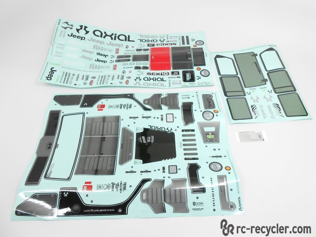 This is an Axial 2012 Jeep Wrangler Unlimited Rubicon unfinished / partially completed Lexan body set. This is designed for the Axial SCX10 12.3" wheelbase and similar vehicles. Includes two complete upper roll cages, decal sheets, fender flares, Front / Rear Spyder bumpers. Please look at all pictures for what is included.