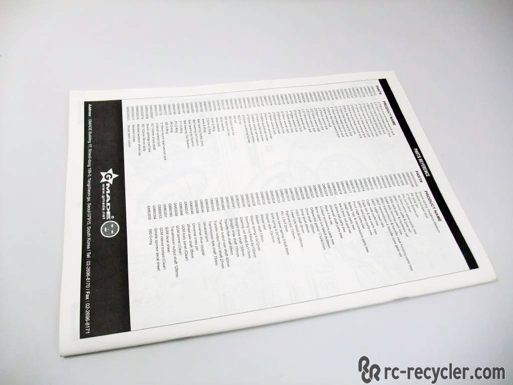 This is the manual from Junfac Gmade's GOM Rock Buggy Kit. This is from a new GOM kit and has never been used. - Additional Information