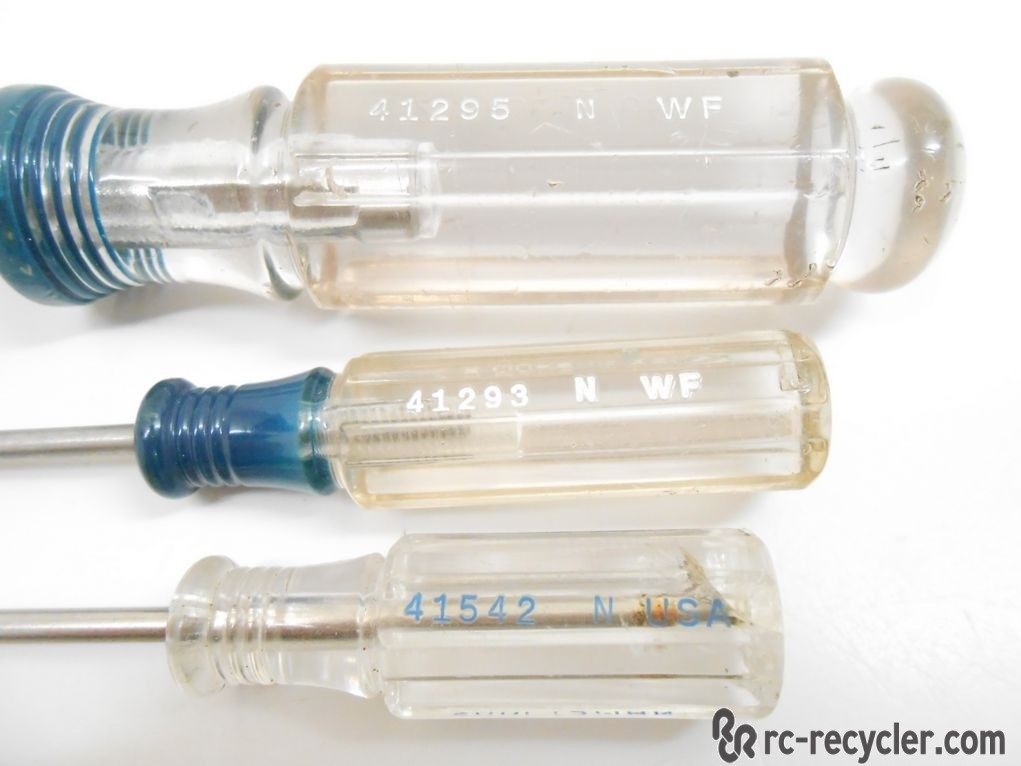 This is a set of three Craftsman Phillips Head Screwdrivers. Includes: 41295 N WF #2 41293 N WF #0 41542 N #0 These are used and in good condition. The smallest #0 has some cracking on it's handle end. See pictures. - Additional Information