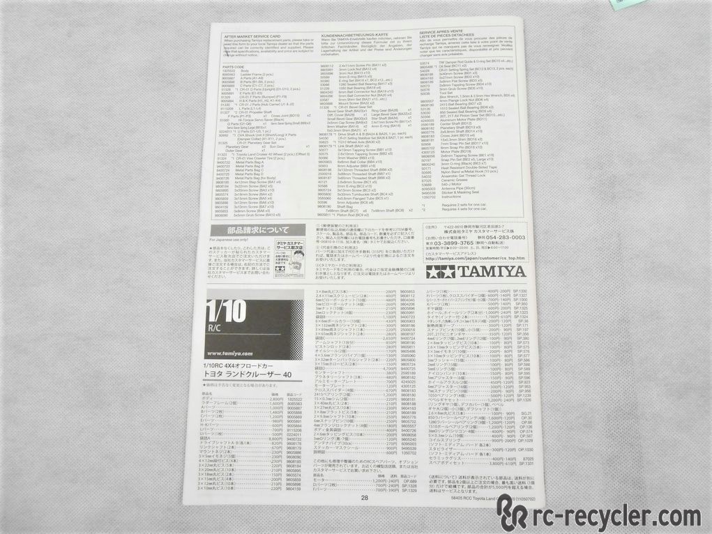 - Tamiya 58405 Toyota Land Cruiser 40 CR-01 Assembly Manual Decals TAM58405